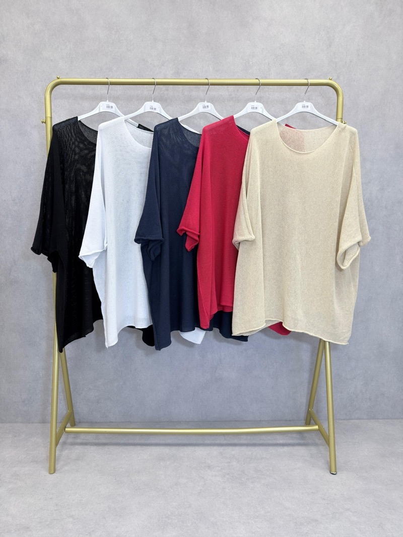 Confectionné dans une maille délicate et respirante, ce top séduit par sa texture légèrement transparente, apportant une touche de finesse et de féminité. Sa matière souple épouse naturellement la silhouette sans la contraindre, offrant une grande liberté de mouvement. Les manches courtes, légèrement amples, couvrent le bras avec élégance, tout en apportant un équilibre parfait entre confort et style.