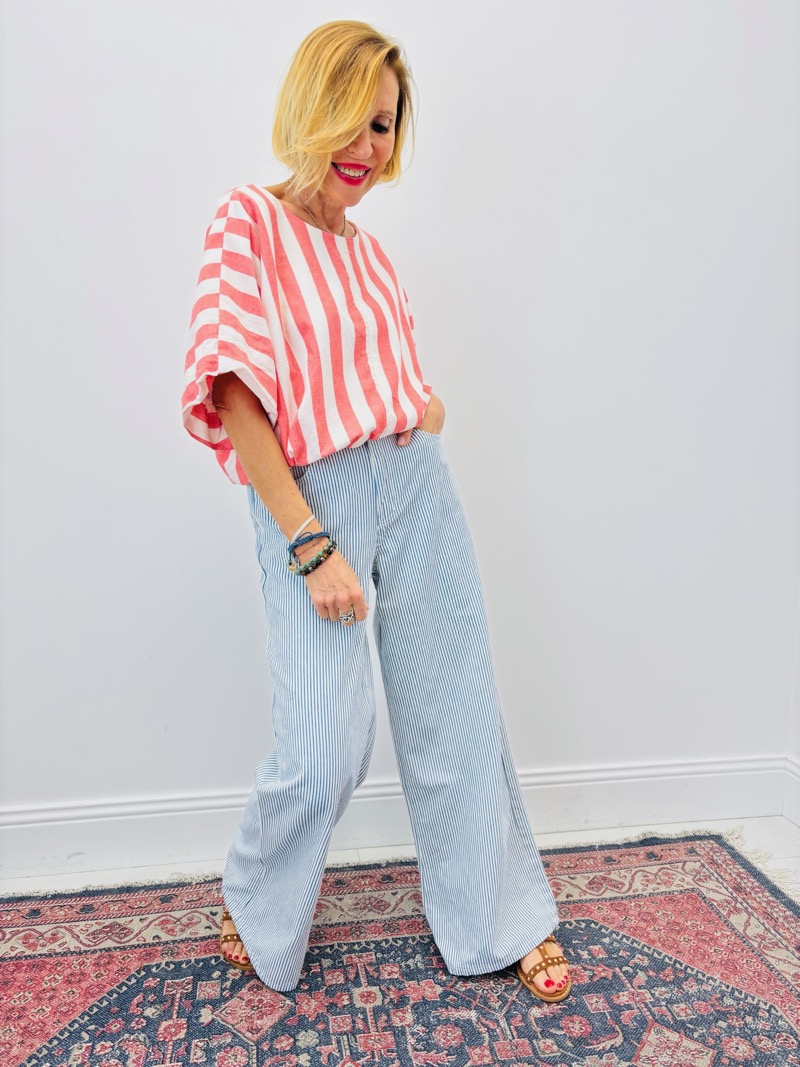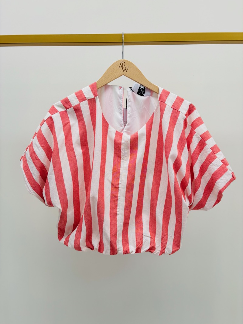 Un essentiel revisité avec caractère. Ce top à rayures bâtons séduit par son motif vertical dynamique qui allonge visuellement la silhouette et apporte une touche estivale immédiate. Le contraste rouge et blanc crée un effet graphique fort, idéal pour dynamiser une vitrine et attirer l’œil.