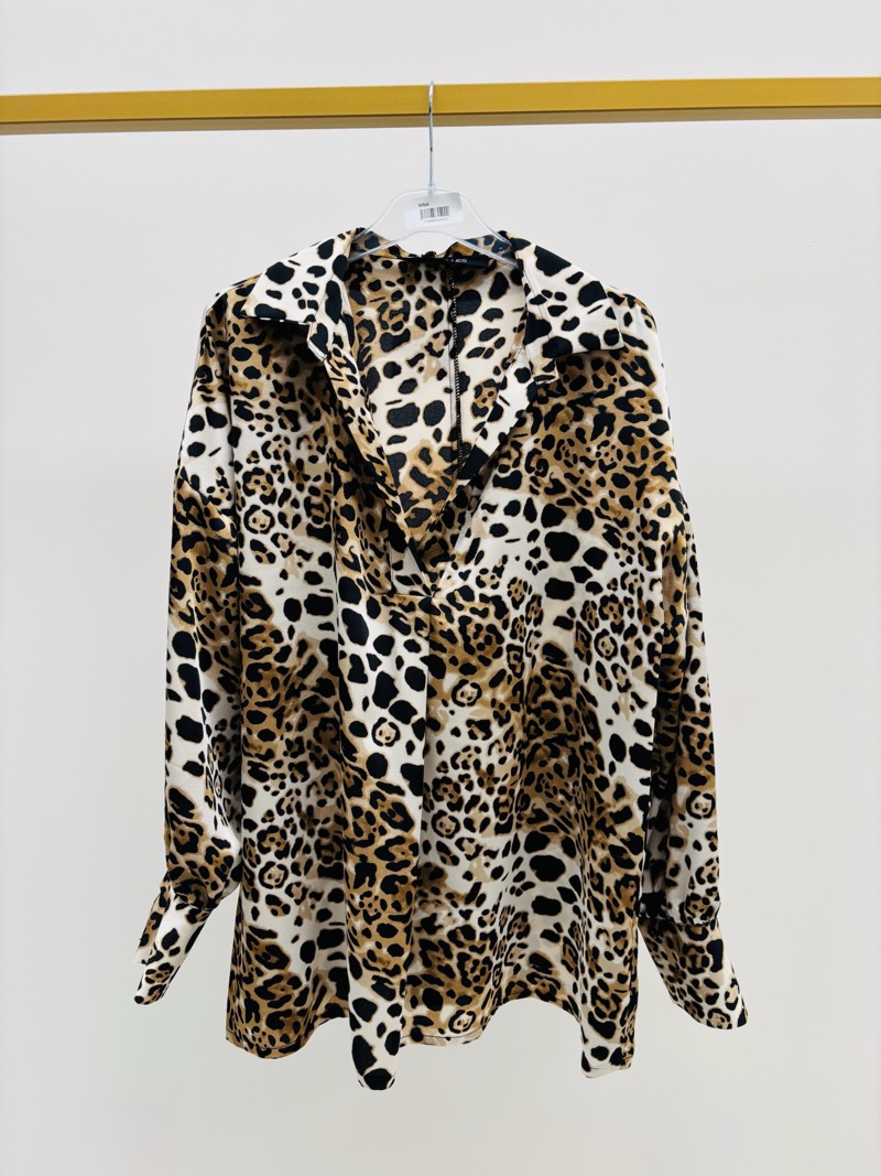 Une tunique léopard chic et fluide signée EMA BLUES, parfaite pour apporter du caractère à n’importe quelle tenue. Son tissu satiné léger offre un toucher soyeux et un tombé élégant. La coupe ample, le col chemise et les manches longues légèrement bouffantes créent un ensemble féminin, moderne et très tendance.