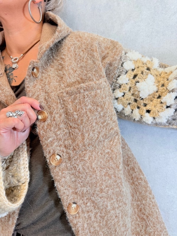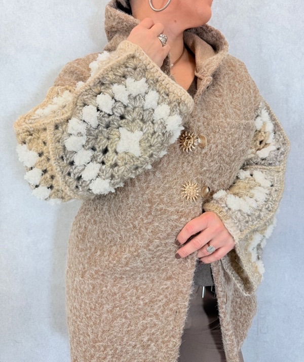 Une pièce pleine de charme et de douceur ! Cette veste à capuche combine un esprit cocooning et un style bohème grâce à ses manches décorées de fleurs en relief. Sa coupe ample et sa matière effet laine bouillie en font un modèle aussi confortable que tendance