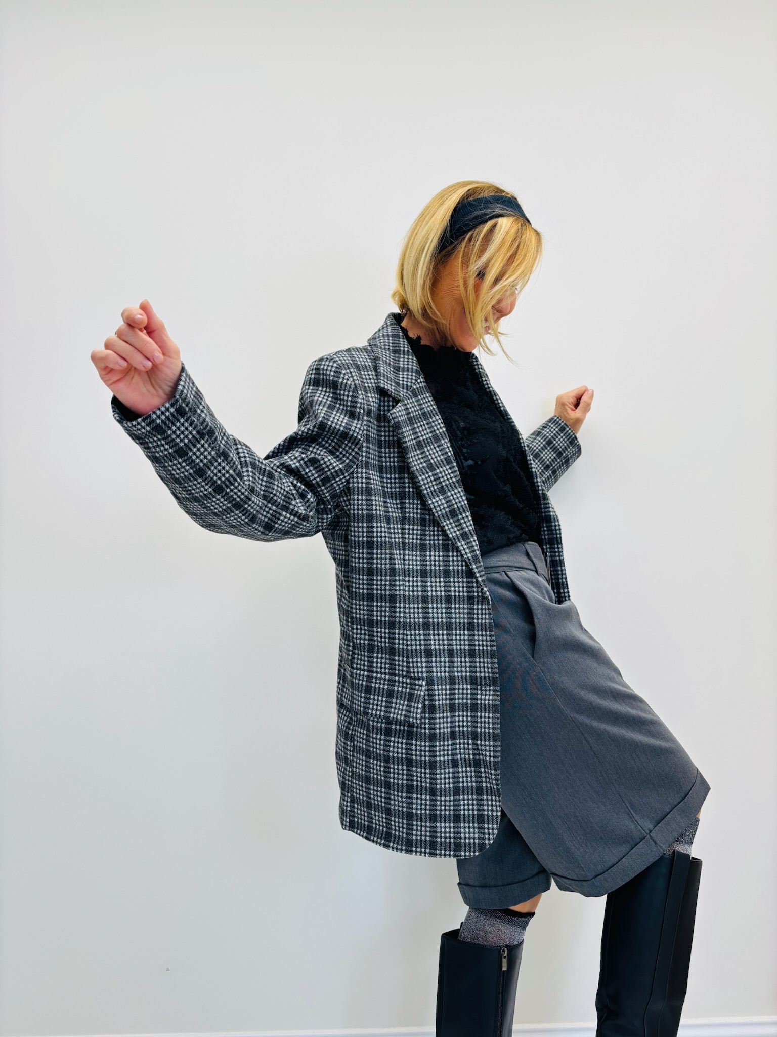 Une pièce classique revisitée dans un esprit chic et citadin : cette veste à carreaux se distingue par sa coupe droite et structurée, idéale pour un look moderne et raffiné.