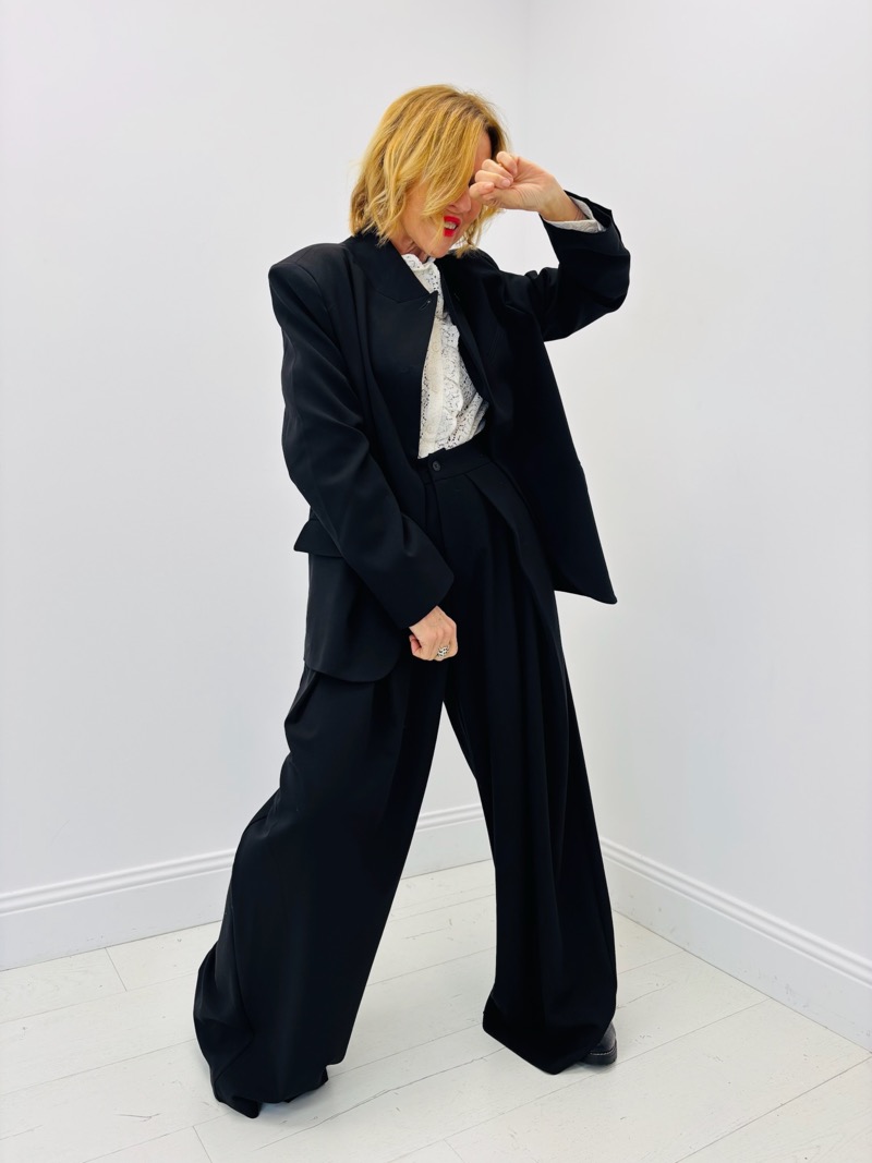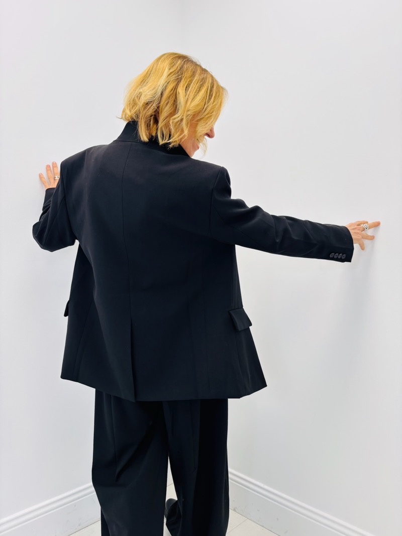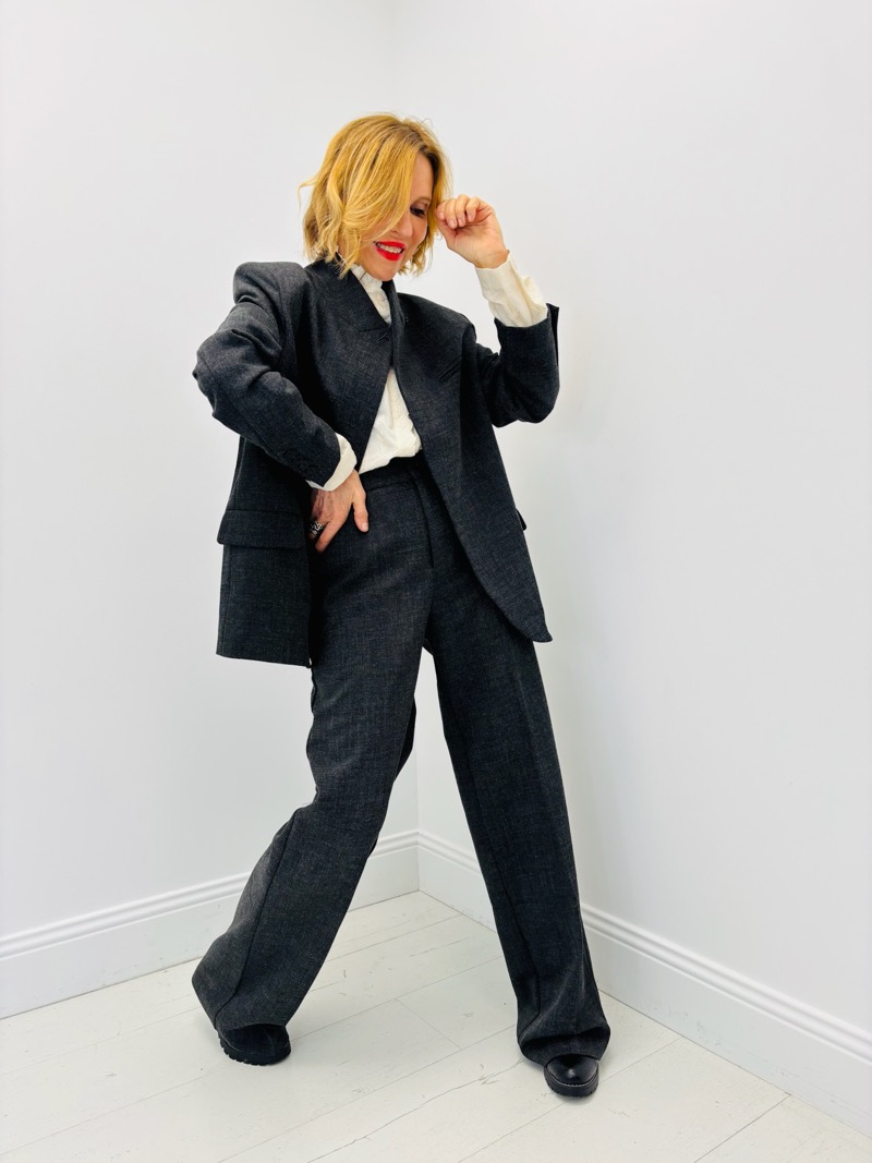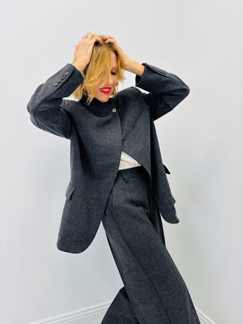 À porter avec un pantalon assorti pour un look tailleur chic et affirmé, ou avec un jean pour une silhouette plus décontractée mais élégante. Elle se marie parfaitement avec une blouse raffinée ou un top minimaliste. Une veste idéale pour créer des looks professionnels, modernes ou casual chic, et valoriser une sélection premium en boutique.