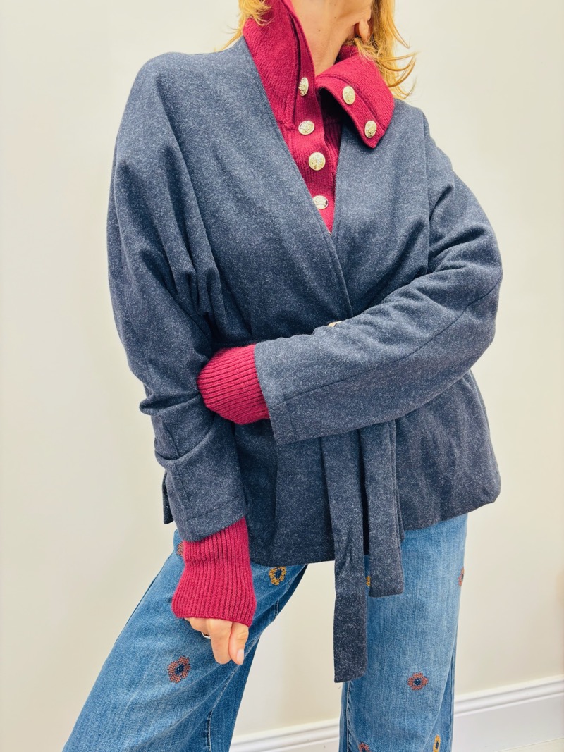 Une veste légère et élégante, parfaite pour la mi-saison. Avec sa coupe fluide et sa ceinture à nouer, elle offre confort et féminité, tout en restant facile à assortir.
