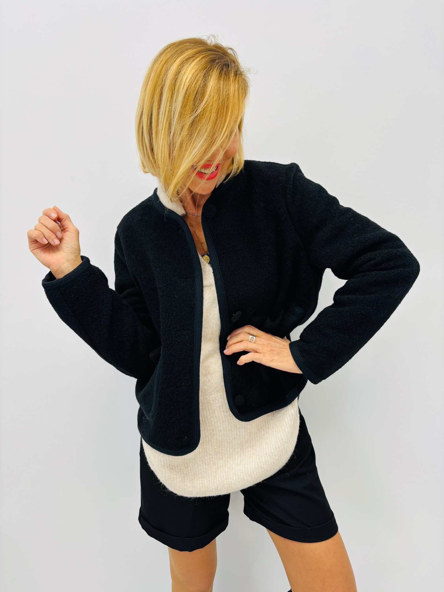 Un essentiel chic & cosy qui rappelle les vestes parisiennes minimalistes.
