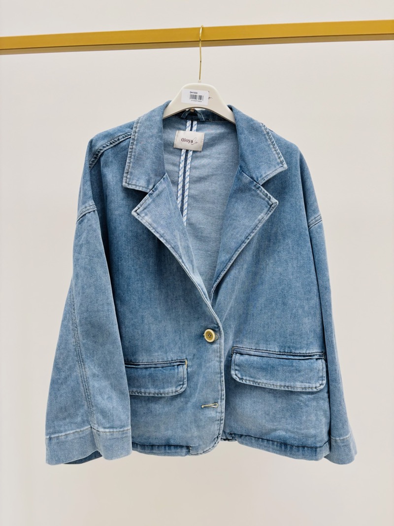 Associée à un pantalon large ou un jean coordonné, elle crée un total look denim moderne et structuré. Portée sur une blouse satinée ou un t-shirt basique, elle apporte une touche casual chic immédiate.