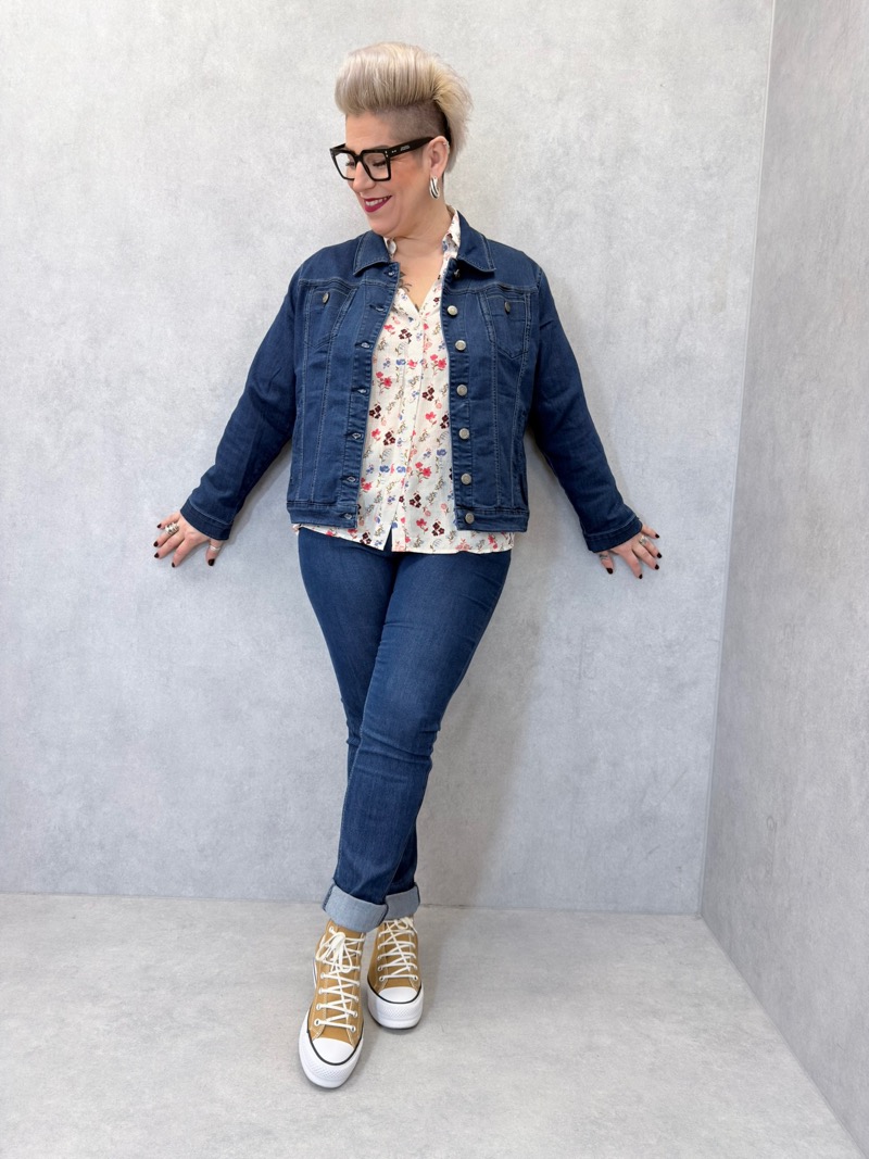 Portée sur une blouse imprimée, un t-shirt basique ou une robe fluide, cette veste en denim apporte immédiatement une touche casual chic à la silhouette.