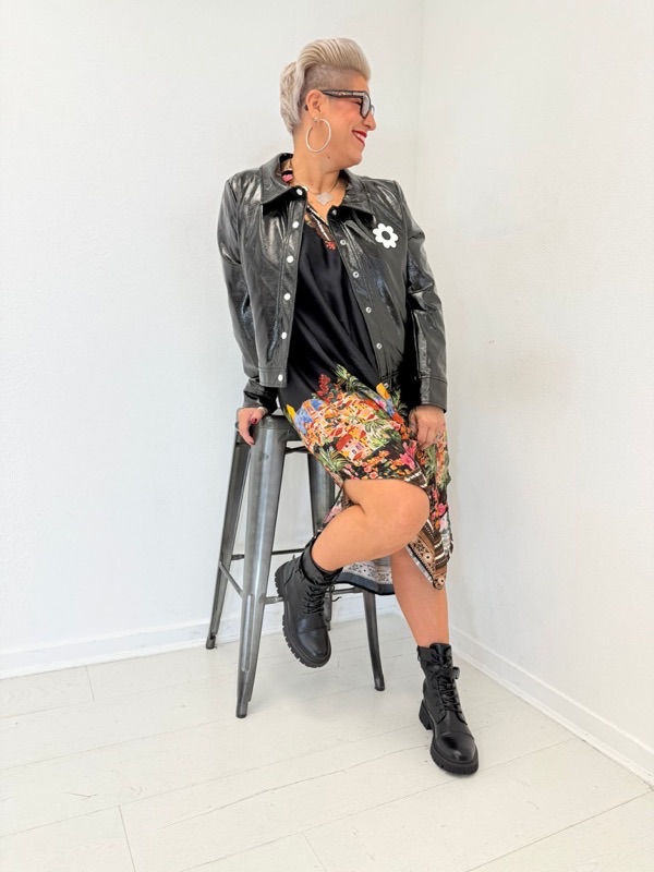 Une pièce forte et originale qui apporte une touche mode à vos tenues. À porter avec une robe imprimée comme sur la photo pour un look audacieux, ou avec un jean et un t-shirt basique pour un style casual chic.