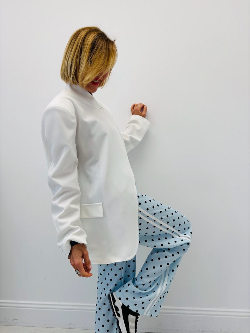 Avec ses poches discrètes et sa coupe légèrement structurée, cette pièce s’intègre parfaitement dans une garde-robe moderne. Elle peut être portée aussi bien dans un look casual chic que dans une tenue plus habillée, ce qui en fait une pièce polyvalente idéale pour les collections de prêt-à-porter féminin.