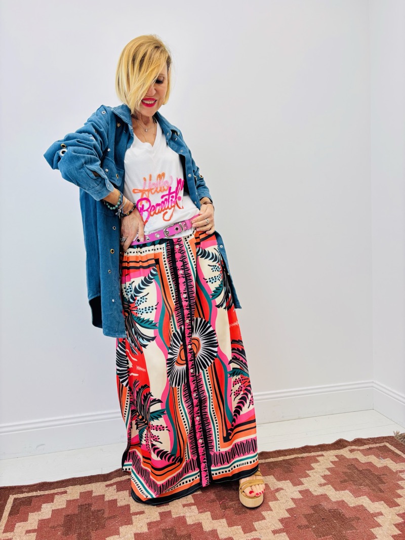 Elle peut également être associée à un total look denim pour une allure plus assumée, ou portée sur une robe fluide pour créer un contraste entre féminité et caractère.