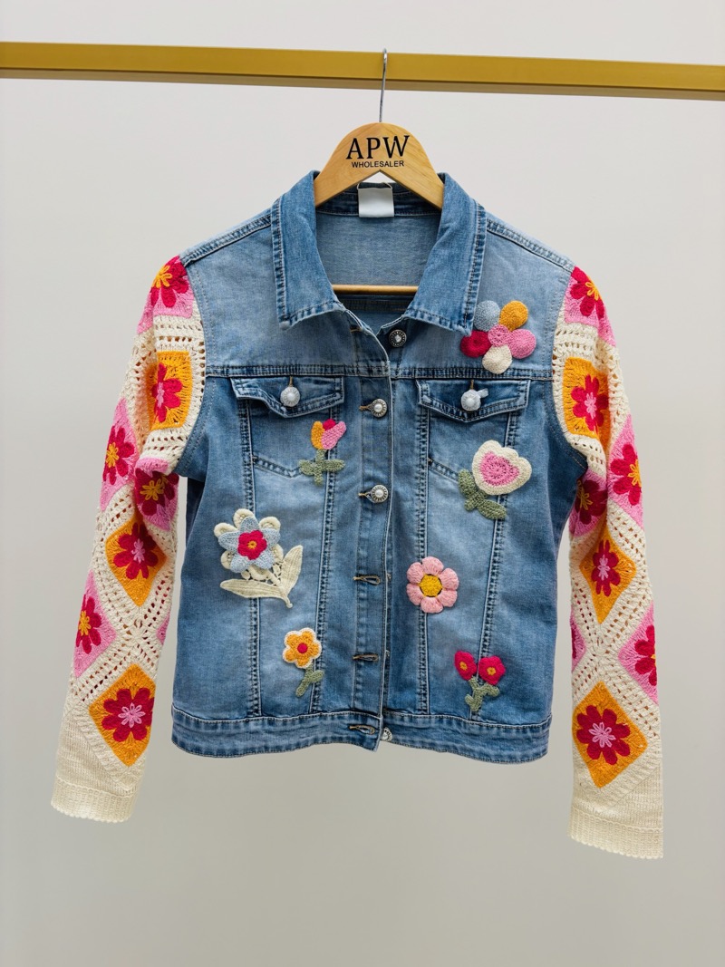 Cette veste en jean est une véritable pièce coup de cœur, mêlant esprit bohème, touche artisanale et allure contemporaine. Le denim intemporel est sublimé par de manches entièrement travaillées en crochet, apportant texture, originalité et un charme unique à la silhouette.