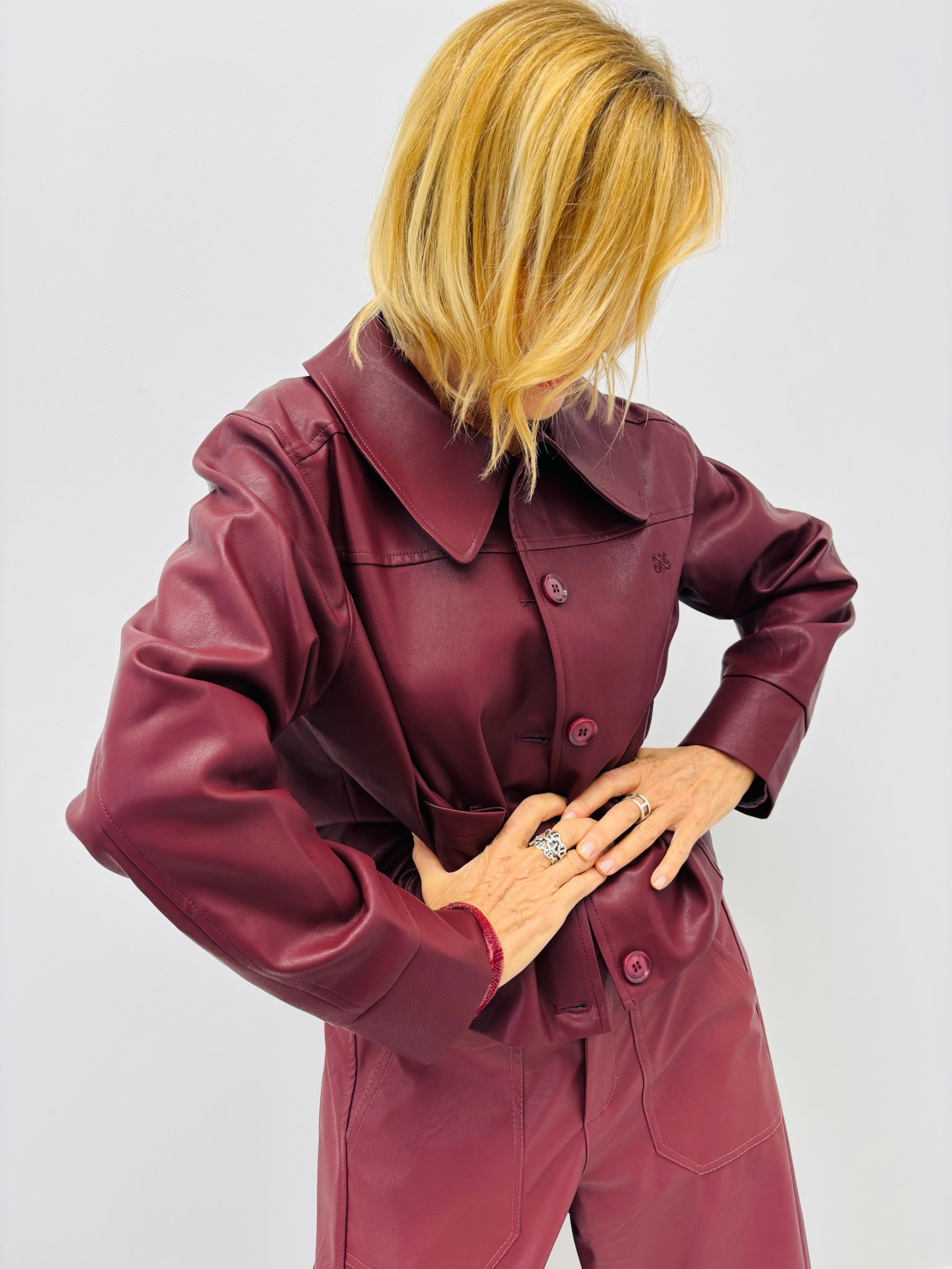 Une pièce phare signée ANGE, alliant modernité et élégance. Cette veste courte en simili cuir séduit par sa coupe structurée et son grand col Claudine revisité. Son toucher souple et sa finition satinée offrent un rendu à la fois chic et contemporain, parfait pour rehausser toutes vos tenues.