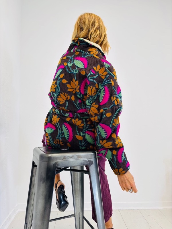 Une pièce forte et confortable, confectionnée en coton épais avec intérieur doublé façon mouton pour plus de chaleur. Son imprimé coloré et graphique apporte une touche ethnique et originale, idéale pour donner du caractère à vos tenues.