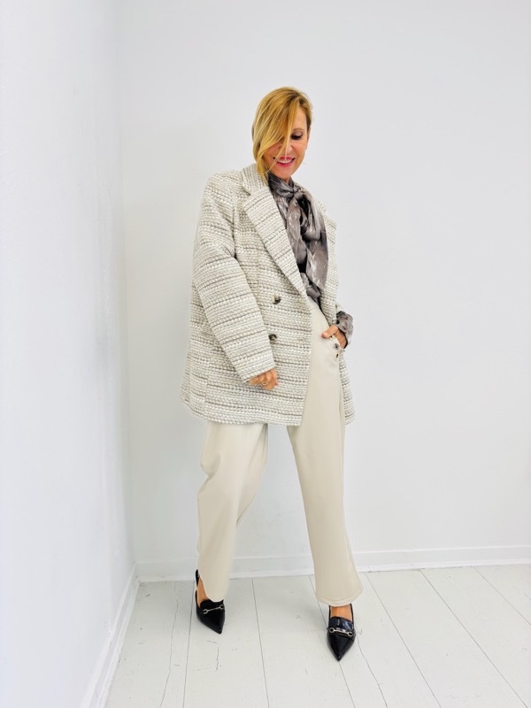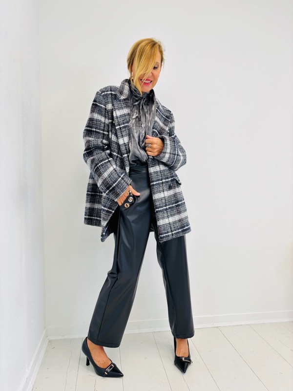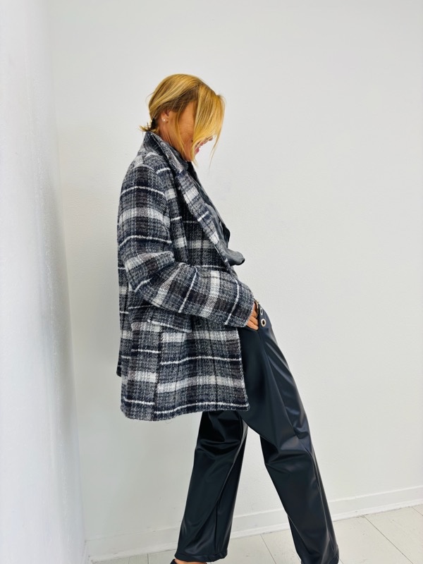 Une pièce signature au charme rétro-chic ! Cette veste structurée séduit par son imprimé à carreaux intemporel, sublimé par une matière riche en laine (60%) qui lui confère chaleur et tenue. Coupe droite légèrement oversize, col tailleur marqué et double boutonnage pour une allure élégante et affirmée.
