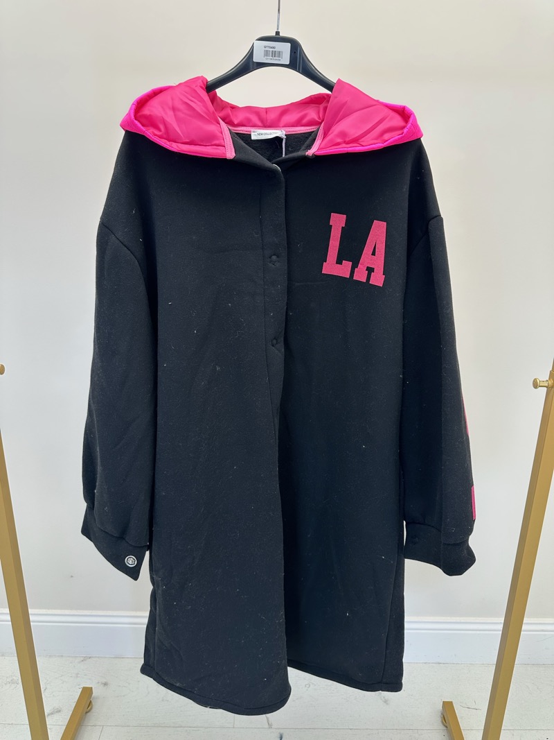 Cette veste longue grande taille affiche un style résolument tendance avec son contraste audacieux entre la couleur taupe et la capuche matelassée rose fuchsia. Sa coupe oversize et fluide assure un confort absolu tout en apportant une touche street chic à vos tenues du quotidien.