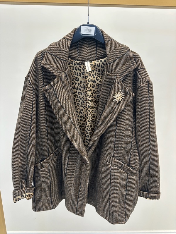 Un manteau chic et audacieux qui combine deux imprimés iconiques : le pied-de-poule à l’extérieur et la doublure léopard à l’intérieur. Sa coupe oversize et son tissu doux en font une pièce forte, confortable et tendance pour la saison.