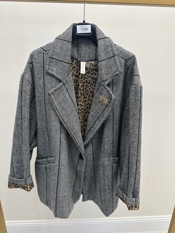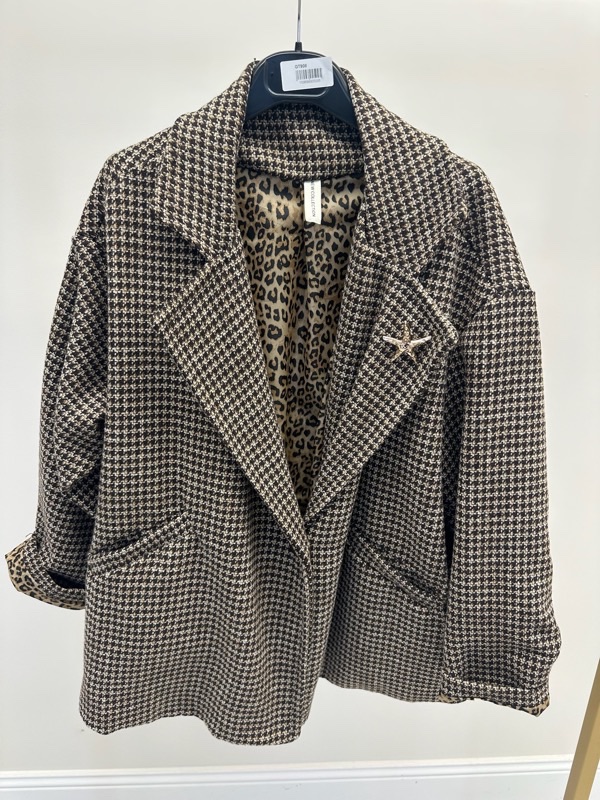 Veste oversize à motif pied-de-poule – Doublure léopard