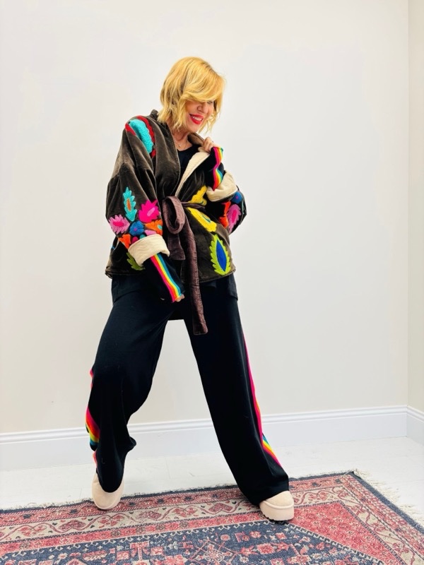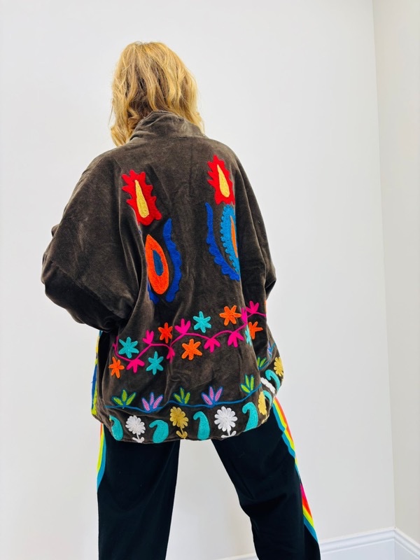 🌸 On aime : la richesse des broderies colorées et l’allure bohème chic de cette veste en velours.