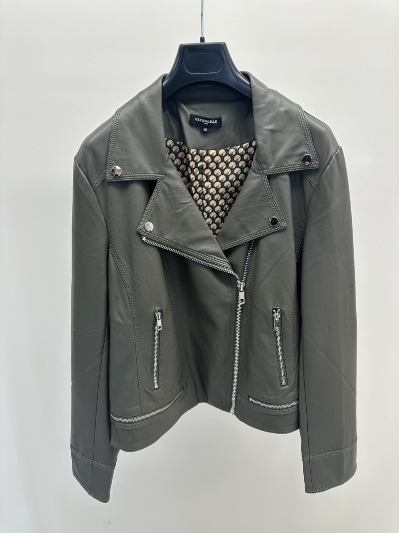 Le zip asymétrique iconique du perfecto, accompagné de boutons-pression décoratifs et de poches zippées, ajoute du caractère sans surcharger la silhouette. La coupe est pensée pour les morphologies pulpeuses : structure les épaules, affine la taille et offre un tombé impeccable.