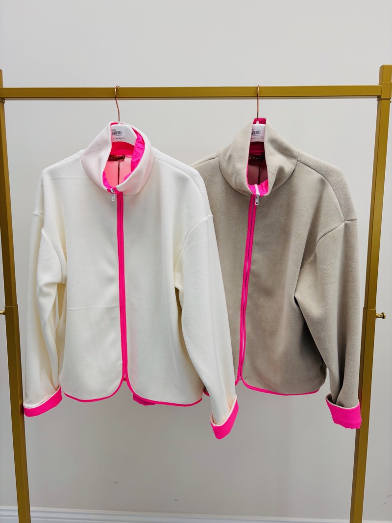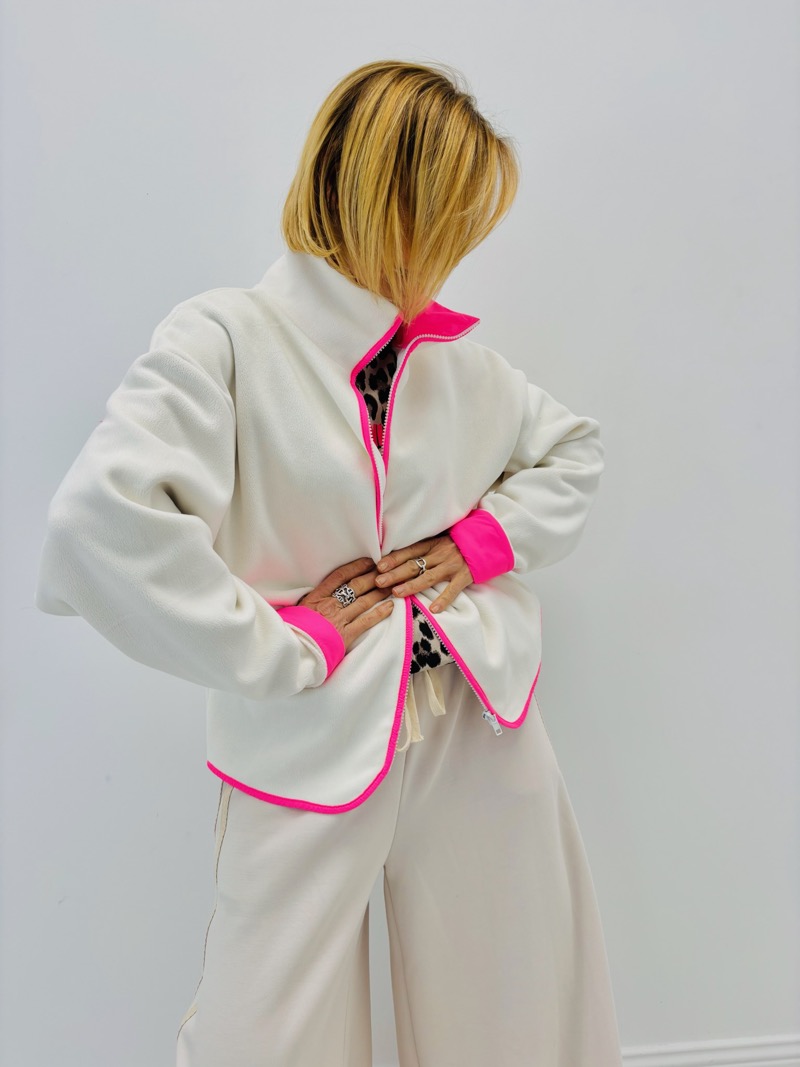 Cette veste polaire revisite l’incontournable pièce cocooning en y ajoutant une touche ultra-mode : des bordures fluo rose vif, qui dynamisent instantanément la silhouette.