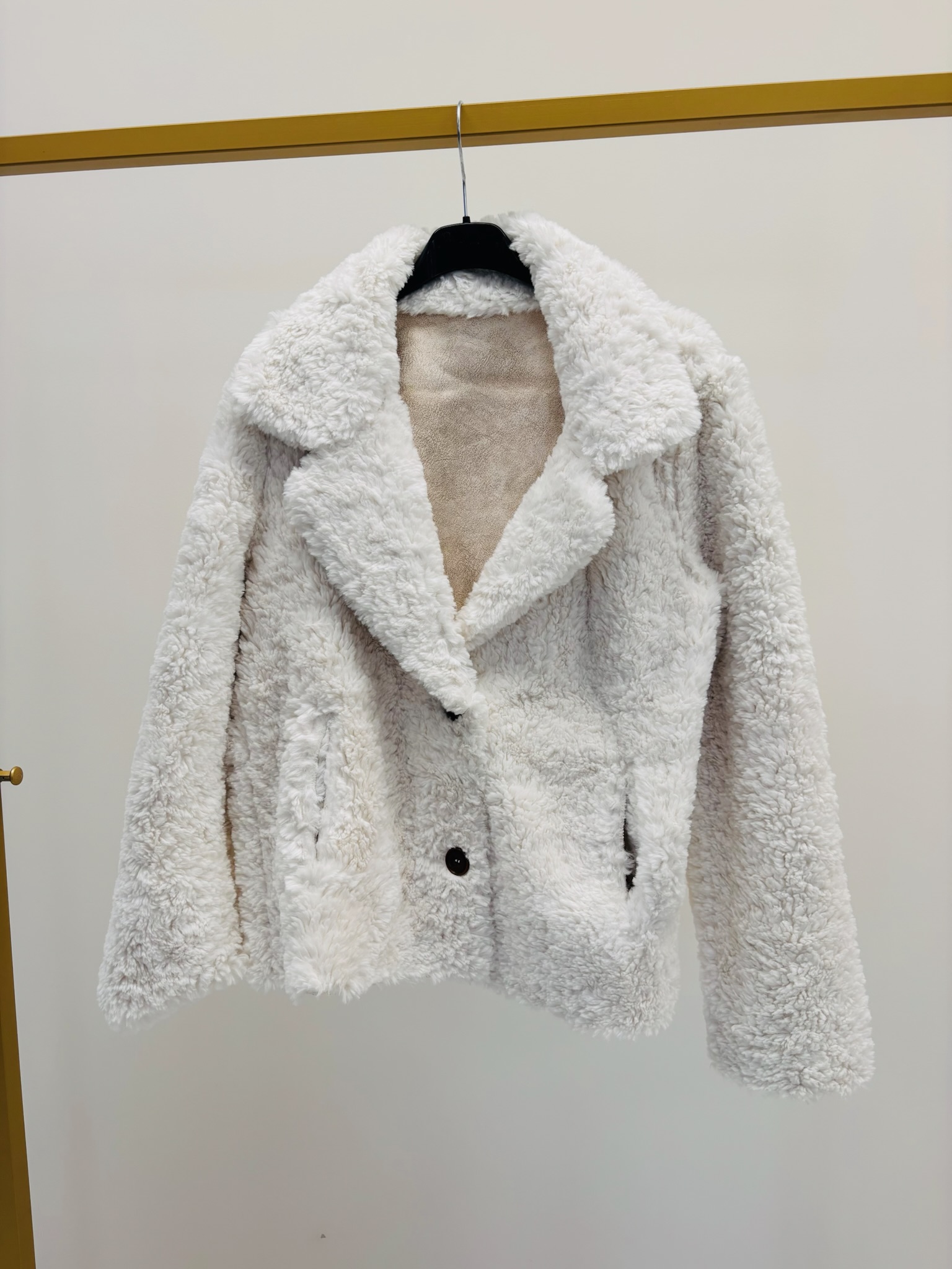 Sa coupe légèrement oversize lui confère un charme naturel, parfait pour les looks d’hiver lumineux.