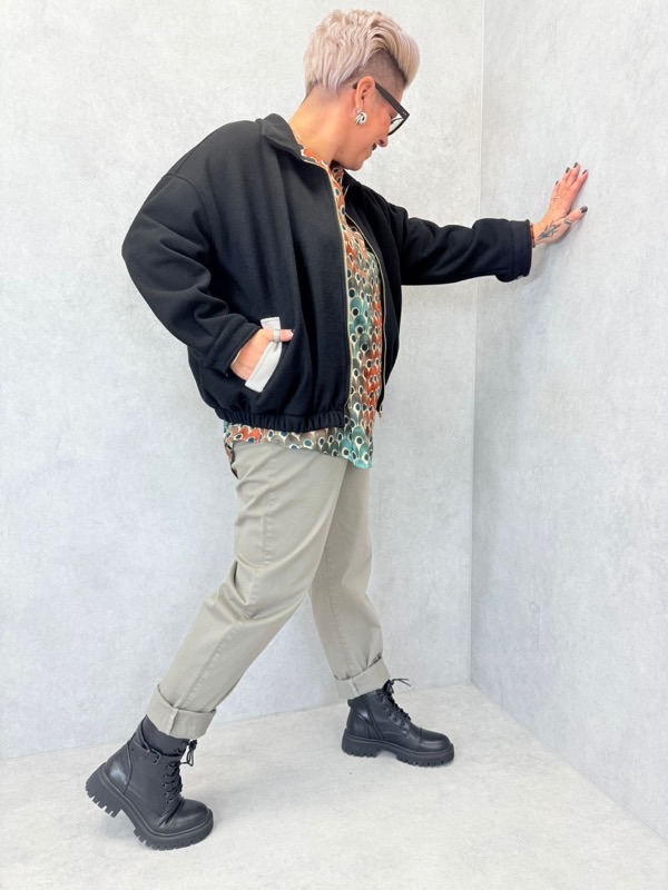 Une pièce essentielle du dressing grande taille, parfaite pour un look moderne et facile à porter au quotidien. Cette veste noire allie style et confort grâce à sa coupe fluide et à sa matière souple qui s’adapte à toutes les morphologies.