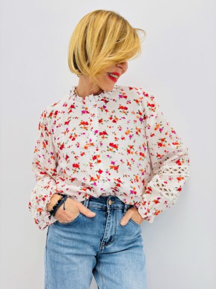 Chemise Liberty À Col Froncé Et Détails Dentelle