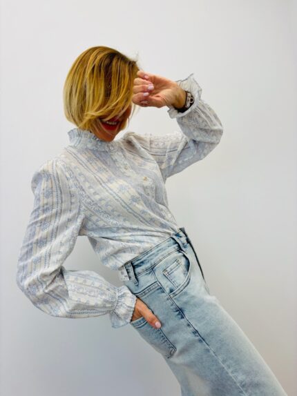 Chemise Col Victorien Imprimé Bleu En Coton