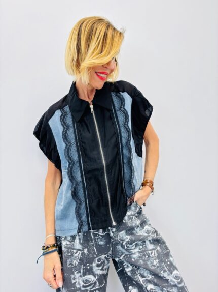 Veste En Toile De Jean Avec Détails Dentelle