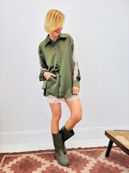 Chemise Satinée Détail Dentelle