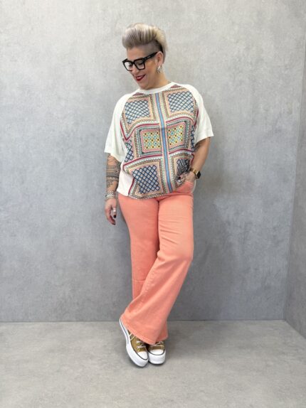 T-Shirt Maille Fluide À Imprimé Graphique Ethnique Grande Taille