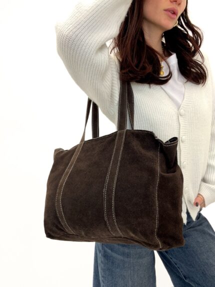 Sac Cabas Souple en Cuir Véritable à Anses Anneaux
