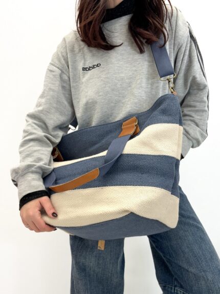 Sac Cabas Rayé Vegan à Anses Contrastées