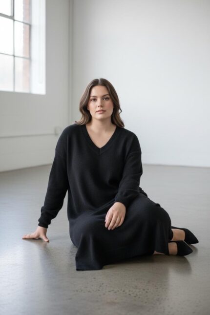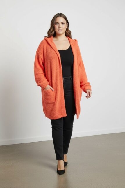 Pull grande taille femme – Maille bouclée oversize, col V & couleurs tendance