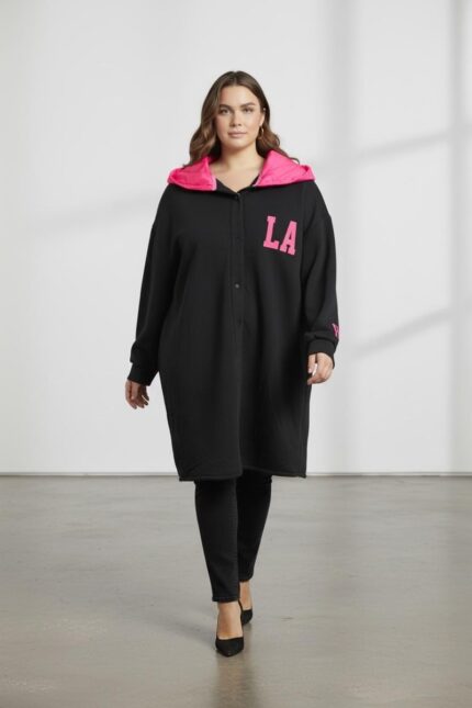 Veste longue grande taille à capuche fuchsia – Esprit urbain et décontracté