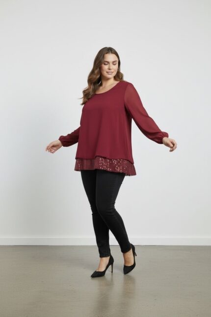 Blouse Bordeaux Double Matière – Élégance Fluide