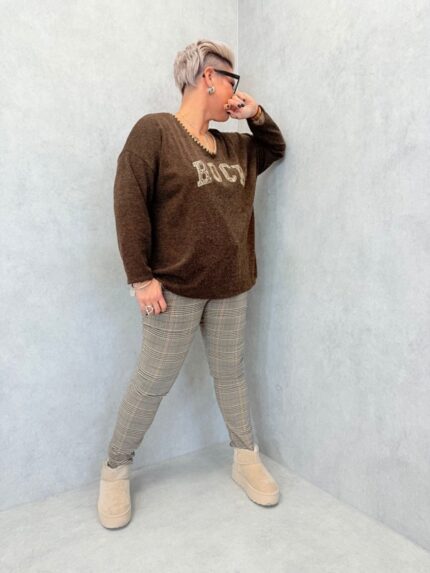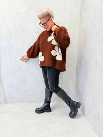 Pull “ROCK” chocolat à détails léopard