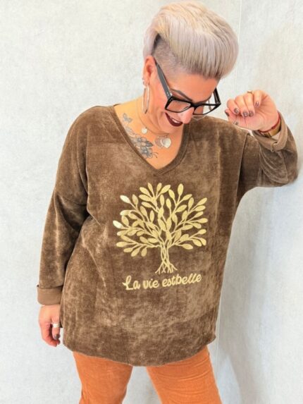 Pull velours imprimé « La vie est belle » grande taille