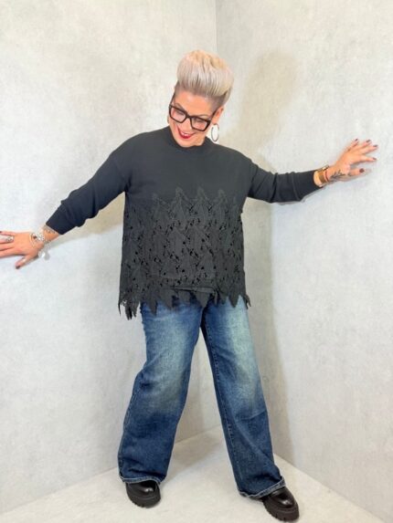 Pull col montant avec dentelle – Grande Taille