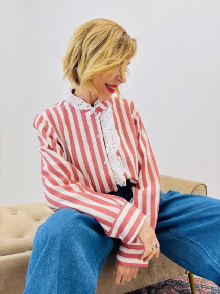 Chemise Rayée À Col Victorien Et Broderie Anglaise