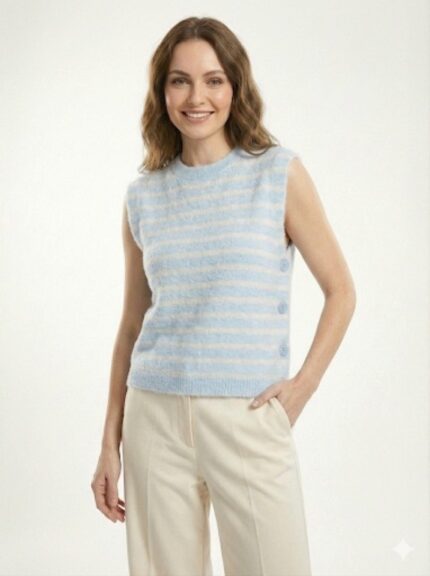 Pull Sans Manches Rayé En Maille Douce