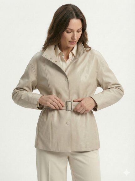 Veste Ceinturée En Simili Cuir À Col Montant