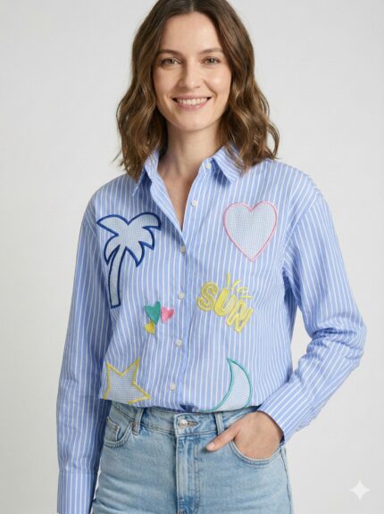 Chemise Rayée Broderies Soleil & Cœurs