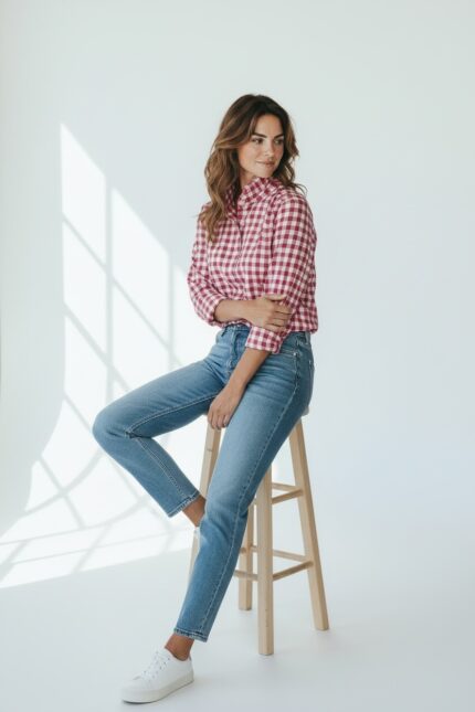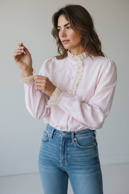 Chemise À Carreaux Col Victorien En Coton