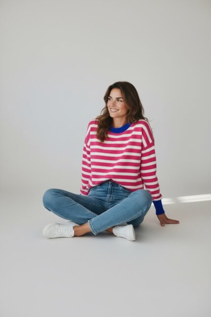 Pull Rayé En Maille Douce À Finitions Contrastées
