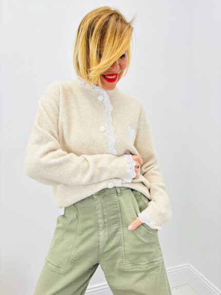 Gilet En Maille Douce À Détail Cœur Et Dentelle