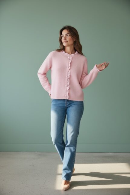 Gilet En Maille Douce À Finitions Volantées