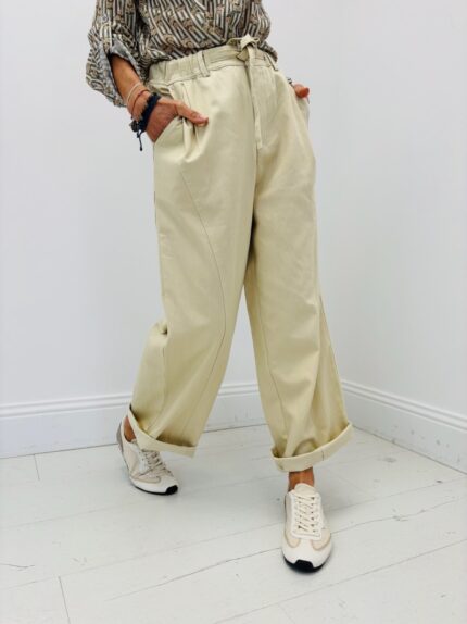 Pantalon Large À Taille Élastiquée Avec Ceinture