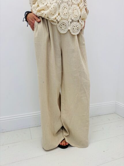 Pantalon En Gaze De Coton Coupe Fluide Taille Élastique Confort Absolu