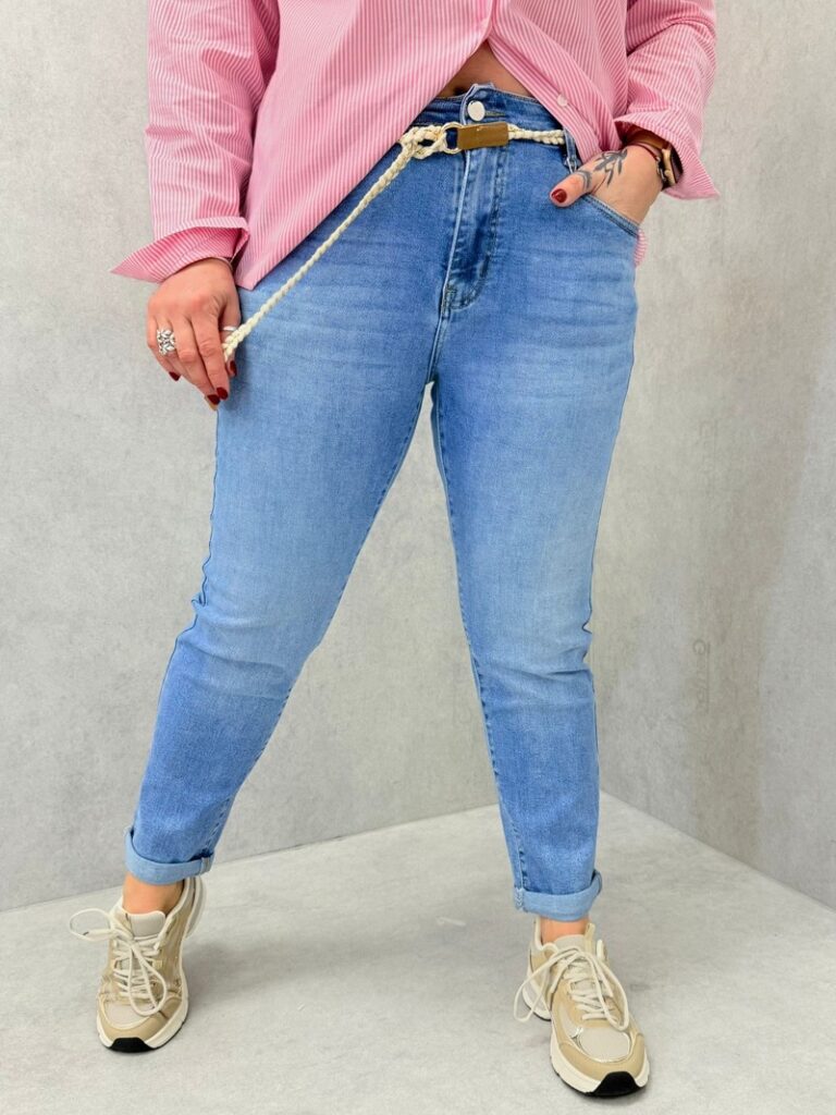 Le mom assume son esprit rétro. Sa taille haute et sa ligne confortable structurent sans contraindre : parfait pour un look effortless qui garde du maintien, du matin au soir.