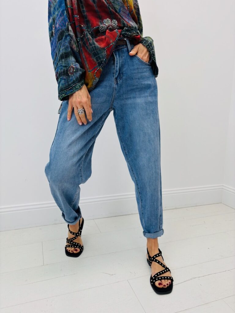 Le mom assume son esprit rétro. Sa taille haute et sa ligne confortable structurent sans contraindre : parfait pour un look effortless qui garde du maintien, du matin au soir.